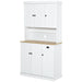 The dresser is outfitted with dual top and bottom cabinets complemented by a smooth-gliding drawer and an expansive middle countertop area. Whether you're looking to stow dinnerware, cooking equipment, or pantry essentials, this cupboard provides ample room to keep your items neatly tucked away yet easily accessible.