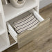 - Spacious storage with open shelves and drawers to accommodate diverse household items and accessories.