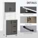 Whether it's kitchen essentials or decorative items, this unit offers abundant storage without sacrificing style. Featuring a spacious dual-part design, it includes two cabinets, three smooth-gliding drawers, and an ample desktop workspace. Place your microwave within easy reach, showcase your distinguished crockery, or set out appetizers for guests – the possibilities are endless.