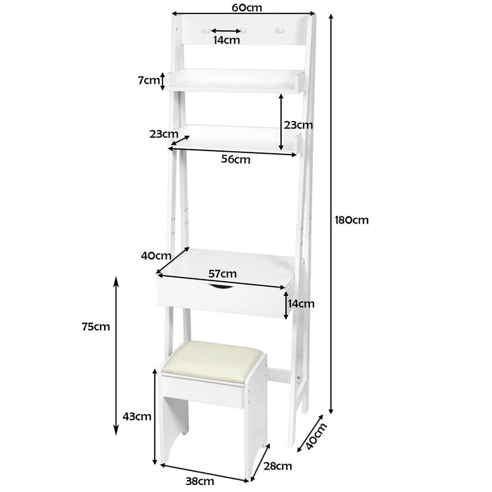 Discover the sophistication and practicality of our Elegant Ladder Style Dressing Station. This refined piece merges form and function, offering a clutter-free haven for all your beauty and work essentials. Its sleek, contemporary design is an ideal fit for any modern bedroom or studio.