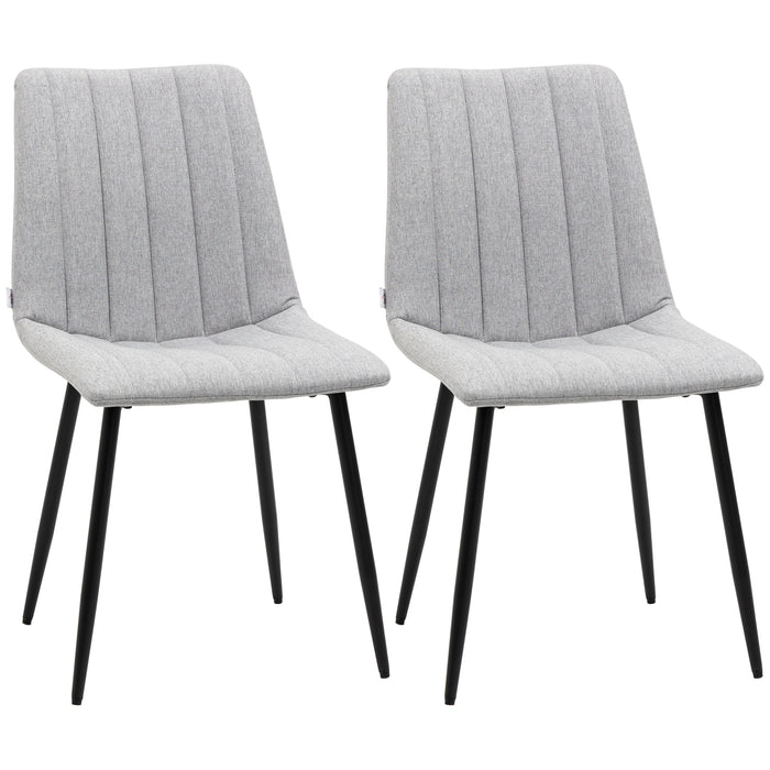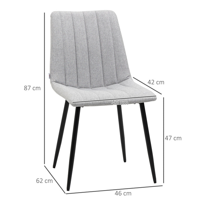 Chic and unobtrusive, the chairs boast a suave grey and black color palette, lending an air of elegance to any room they inhabit. Crafted with a fusion of polyester fabric, dense sponge padding, and reliable steel, this set promises both comfort and style. The adjustable feet ensure the chairs remain level and wobble-free on any surface.