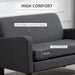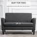 Flaunting a minimalist aesthetic with a twist, the loveseat features smoothly curved arms and a subtly slanted back that not only enhance the visual appeal but also offer a supportive, nestled seating experience. Dressed in a versatile charcoal grey, its linen-like fabric exudes a soft, inviting texture that's gentle on the skin, while also being effortlessly stylish.