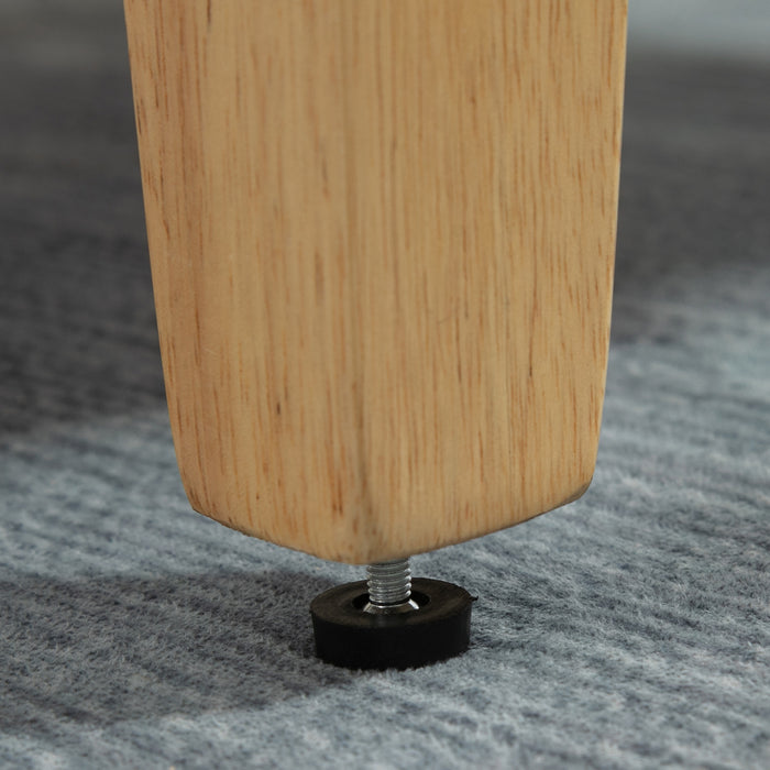 The foundation of this chair is as sturdy as it is stylish, with four wooden legs creating a solid base. Each leg is fitted with adjustable foot pads, ensuring the chair remains balanced while protecting your floors from scratches.