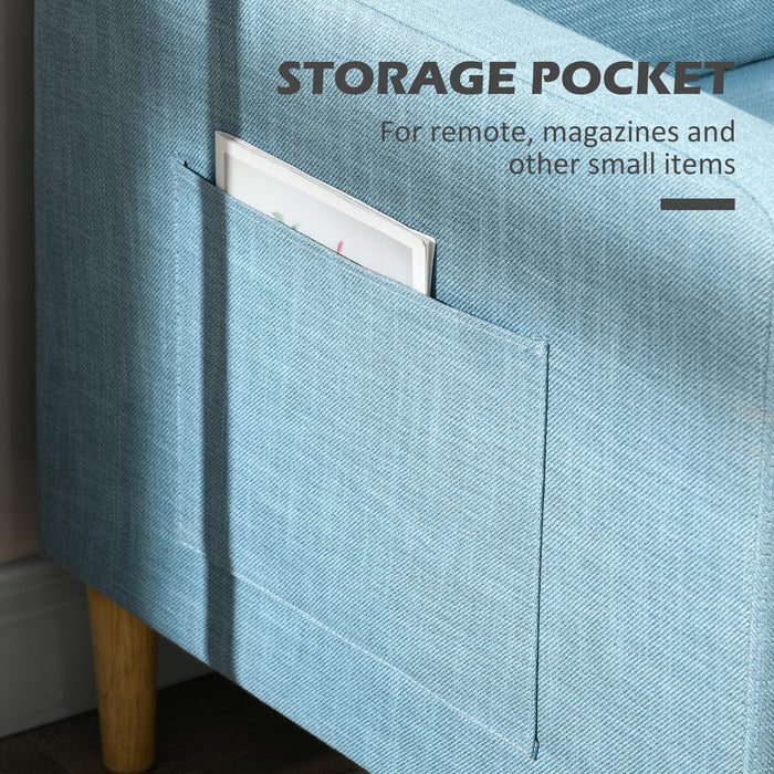 Practicality is not left to chance as this sofa boasts two discreetly integrated side pockets, ensuring that essential items such as books and remotes are always within arm’s reach. The thoughtful design guarantees your living space stays clutter-free and organized.