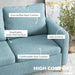 Whether nestled in a cozy corner of your bedroom or accentuating your main living area, this couch’s dimensions offer both spacious comfort for two and a generous seating option for one. Revel in its comfort during daytime or use it as a serene reading nook in the evenings.