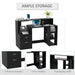 Not only is the desk structured for maximum utility, but it's also a style statement. With sleek metallic touches and a striking black finish, it seamlessly blends into any decor setup, adding a touch of refinement. Here's a glance at the specs: