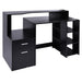Efficiency meets elegance as this desk offers ample storage and organizational space. Equipped with a duo of smooth-gliding drawers, three convenient side shelves, and a spacious surface, it's engineered to keep your office essentials within reach, yet neatly organized. The additional high top back shelf ensures you have all the space needed for your gadgets and decor.