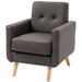 Welcome to the fusion of classic elegance and contemporary design. Our lounge armchair is the perfect piece to add a touch of sophistication and comfort to any room in your home. Dressed in a sleek, faux leather finish and gracefully sculpted with button tufting, this chair isn't just a place to sit; it's a statement of style.