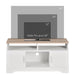 Embrace sophistication and organization in your living space with our contemporary TV cabinet. This elegant console, with its clean lines and chic white color complemented by a striking wood-effect table top, enhances various decor settings seamlessly. A large surface area accommodates TVs up to 42 inches, offering a perfect view for your entertainment.