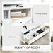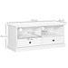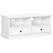 The stand features two spacious drawers perfect for stashing away DVDs, remote controls, and other media essentials, keeping your space clutter-free. Above, two open shelves provide the perfect showcase for your cable box, gaming consoles, or decorative items. With a clean white finish, this unit offers a refreshing look that will brighten any interior.