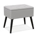 The ottoman achieves both nice looking and high practicability, and will be a piece of necessary furniture in your home. Designed with a hinged lid, this stool features a storage function to accommodate your various items, like books, scarves, socks, or other accessories. It can also serve as a vanity stool or shoe-changing stool in ordinary times. Equipped with 4 solid wood legs, it is endowed with high stability for large weight capacity. And velvet surface combined with a padded seat also gives you an extremely comfortable sitting. If you are looking for such a product, don't hesitate to place an order! Hinged Flip Top and Storage Function: The hidden storage space of this footstool makes it outstanding. The stool is equipped with a hinged flip lid, which is of high quality and able to withstand multiple times of openings and closing. It is a great storage solution to organize your room, such as toys, books, clothes, remote control, etc. Velvet Surface and Thick Cushion: This storage ottoman benefits from premium velvet material, which is skin-friendly and provides you with a deluxe place for sitting. Furthermore, the generously upholstered seat cushion is super thick and soft, and can also add a satisfying user experience. Excellent Craftsmanship and Solid Wood Legs: The footrest is built for long-lasting service. 4 legs are equipped with foot pads, which can effectively reduce the noise when you move it. They are made of solid pine wood, ensuring high stability without cracking. Plus thickened boards, the modern pouffe ottoman enjoys robust construction with a large weight capacity. Diversified Usage for Wide Application: The velvet footstool is aimed at your different needs. You can use it as a sitting stool at the entryway for changing shoes. Or you can regard it as a storage solution. It also can serve as a practical footrest, offering you a spot to support your feet when you sit on a sofa or rocking chair. Fashion-Forward Appearance: The velvet surface and the elegant colour give a luxurious image to your house. This flip-top stool can be matched with different decorative styles of your place, and will be fairly suitable for your bedroom, living room, dressing room, or entryway.