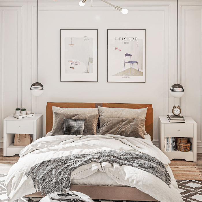 Imbue your living space with a contemporary flair. The nightstand, dressed in a fresh white finish and adorned with simple lines, epitomizes modern minimalism. It's a versatile piece that's ready to complement your decor and brighten up your room when paired with matching furnishings.