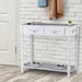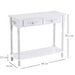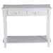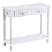Say goodbye to clutter and hello to organization. Equipped with two commodious drawers, this table invites you to neatly tuck away items like keys, wallets, and assorted small essentials. The extensive tabletop and additional lower shelf provide ample space to showcase your favorite greenery, cherished photographs, and treasured keepsakes.