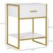 Introducing our latest addition to home luxury – a minimalist bedside table that exudes sophistication. Ideal for complementing any modern bedroom or living space, this chic table pairs a stunning gold-tone frame with a crisp white finish, presenting a seamless blend with your existing decor. Excelling in both form and function, this table stands as a testament to contemporary design.