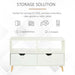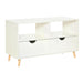 The ample surface of this console provides a superb stage for your television or display needs. Beneath the top board, you'll find two accessible open compartments designed to house your electronic gadgets and devices. Additionally, two sleek drawers offer concealed storage for all your media accessories like remote controls, game controllers, and cables, ensuring that your space remains tidy and clutter-free.