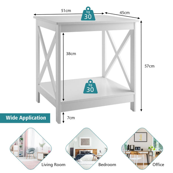 This side table isn't just a surface for your coffee cup; it boasts a spacious top and an additional lower shelf that provides ample space for your necessities. Store your latest reads, elegant vases, or your nighttime essentials within arm's reach for convenience and easy accessibility.