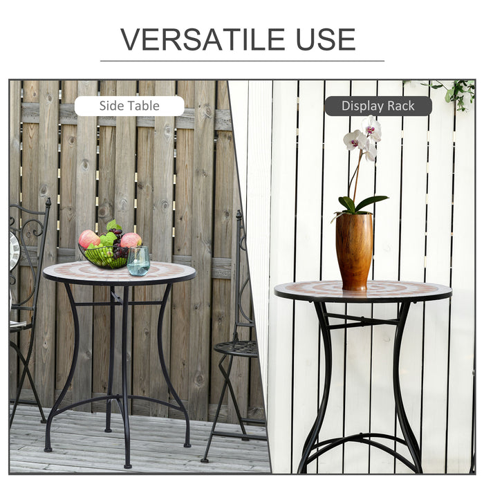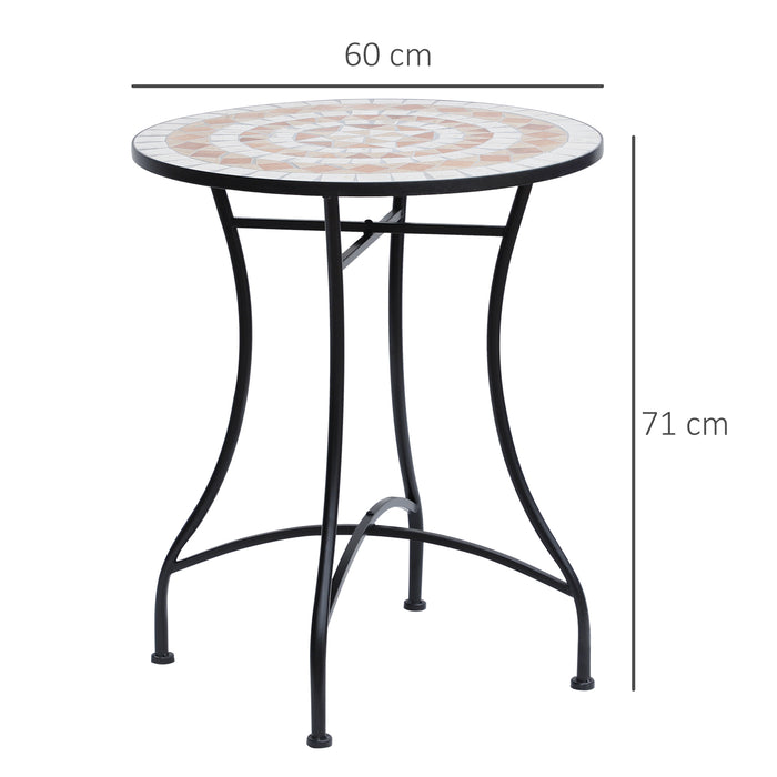 Introducing an elegant touch to outdoor dining and leisure, our mosaic garden table exemplifies sophistication with its ornate ceramic tile arrangement. The tabletop's intricate black, orange, and white mosaic pattern acts as a vibrant canvas, transforming your garden, patio, or conservatory into a picturesque retreat.