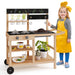 Colour: Black + Natural Materials: Fir Wood, Stainless Steel, Plastic Product Dimensions: 87 x 35 x 91 cm (L x W x H) Countertop Height: 54 cm Net Weight: 5 kg Box QTY: 1 Package Includes: 1 x Mud Kitchen 1 x Sink 1 x Pan 1 x Pot 3 x Utensils 3 x Planting Pots 1 x Instruction