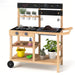 Crafted with sturdy fir wood, this outdoor kitchen playset is a secure and dependable option for children over 3 years old. The child-friendly handle and smooth wheels make it a breeze to move the kitchen. Kids will delight in playing with stoves, rotary knobs, and sink. With 3 planting pots included, little ones can also engage in gardening activities. The chalkboard adds a creative fun to the play experience, encouraging imagination and artistic expression. Additionally, the hooks and open shelves provide convenient storage and easy access for play items. Reliable and Safe Design: Constructed from natural fir wood, this mud kitchen ensures both sturdiness and safety for kids, featuring a smooth splinter-free surface, rounded edges, and stable legs. Moreover, it is a reliable choice for little chefs aged 3+ years old. Hassle-Free to Move: Designed with an easy-to-grab handle and smooth wheels, this outdoor play kitchen promises fun in the garden or backyard. The lightweight design allows children and parents to move it effortlessly, ensuring the fun never stops. Interactive Play Features: This garden kitchen playset provides a sensory experience with 2 stoves, rotary knobs with clicking sounds, and a removable sink. It also includes 3 planting pots to engage little gardeners in growing and tending to plants. Organizational Storage: The wooden mud kitchen comes with hooks for hanging utensils neatly, and open shelves for easy access to toys and kitchen accessories. Its ample storage space keeps items organized and within reach, enhancing playtime and encouraging organization skills. Worry-Free Installation: Equipped with a clear, illustrated manual, this outdoor kitchen set is quick to set up, leaving more time for play. Additionally, the chalkboard encourages creative expression, promoting outdoor learning, imaginative play, and social interaction.