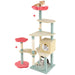 Our 155 cm tall 7-level cat tree is meticulously crafted with a cloud-like cozy top perch, providing a heavenly resting spot for your cat to relax and observe their surroundings. The perch in a delicate flower shape and refreshing color adds a touch of elegance and sophistication to the whole tree. Moreover, it comes with a comfortable cat condo for private napping, reliable scratching posts for cats to grind claws, complemented with an interactive spring ball and plush dangling balls that provide endless entertainment for active felines. Offering not just fun but also stability, the cat tree includes an additional support column for added security and robustness, while its flexible rotation capability allows for versatile placement in your home. Bullet Points: Luxurious Resting Spots: This 155 cm tall cat tree includes a cloud-like cozy top perch with thick padding, providing a plush space where your cat could lounge and overlook. And there is a private cat condo at the bottom for peaceful naps and relaxation. All platforms are covered in soft plush fabric for ultimate comfort. Fulfill Scratching Needs: Equipped with 6 reliable scratching posts, the cat tower provides satisfying surfaces for cats to grind their claws. Moreover, the posts are wrapped in natural sisal ropes, which are scratch-resistant, wear-resistant, safe and healthy. Stable and Reliable Structure: The flower cat tree boasts a large additional support column that enlarges the footprint for enhanced stability, preventing any wobbling when cats jump up and down. Furthermore, it can be rotated flexibly to suit diverse home layouts. Endless Fun: This cat climbing stand comes with an interactive spring ball and 3 plush dangling balls that stimulate your cats’ natural instincts, keeping them entertained and engaged. Additionally, it comes with 7 layers for cats to climb up and down, including 6 spacious platforms for playing and resting. Charming Floral Design: The top perch is intricately shaped like a delicate flower, complemented by refreshing hues and a flower-shaped platform. Not only is it a functional cat tower, but also an elegant piece of furniture to enhance the aesthetics of your home.