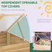 - Two hinged roof panels for ventilation and convenient access