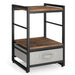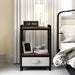 Elevate your interior with our versatile industrial nightstand! Featuring a spacious tabletop and open shelf, the bedside table offers ample room for displaying and storing items. A detachable fabric drawer also provides a discreet storage solution for your bedside essentials. Constructed with premium boards and a sturdy, powder-coated metal frame, the end table ensures strong support while adjustable foot pads provide superior stability on uneven floors. Its natural wood grain paired with a matte black metal frame infuses any space with an elegant industrial vibe. Perfectly suited as a bedside table, end table next to your couch, or as a functional accent in your hallway, it seamlessly blends utility with style. Bullet Point: Spacious Open Storage Area: Our nightstand offers a spacious square tabletop and an open shelf ideal for displaying and storing various items such as lamps, magazines, cups, and knick-knacks. Anti-falling guardrails on the sides ensure that everything stays securely in place. Convenient Fabric Drawer: A detachable fabric drawer with a reinforced front panel enhances the bedside table, offering a subtle yet effective storage solution for bedtime essentials. This feature helps maintain a clutter-free environment while keeping necessary items close at hand. Robust Construction: Crafted from premium boards and supported by a sturdy powder-coated metal frame, the end table delivers reliable stability and durability. Designed to cope with everyday use, the adjustable foot pads ensure perfect balance even on slightly uneven surfaces. Industrial Chic Design: The combination of a natural wood grain surface with a matte black metal frame adds a touch of industrial flair to your living space. This chic design element makes the night stand a perfect match for both rustic and contemporary room styles. Flexible Use in Any Room: The rustic brown side table can serve as a stylish end table next to a couch, a practical bedside table in a bedroom, or an additional storage solution in a hallway. It complements any living space, enhancing functionality and aesthetic appeal.
