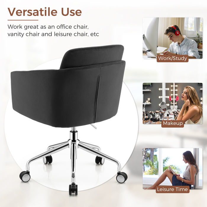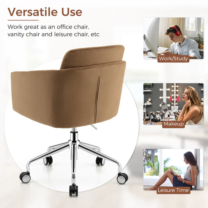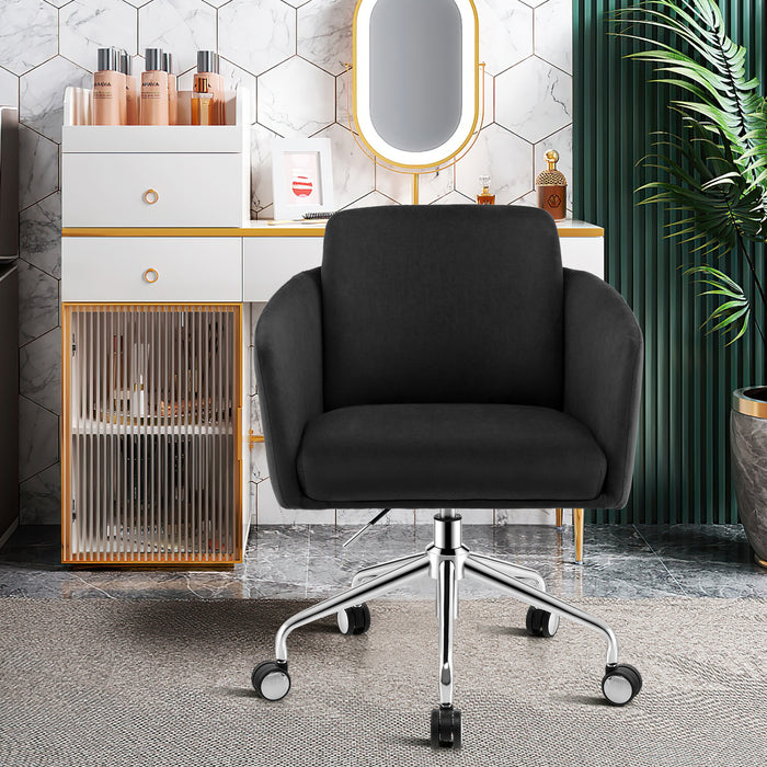 Blending quality craftsmanship with a sleek design, this chair is more than just a functional piece—it's a stylish addition to any home office or professional environment. Its timeless aesthetic suits numerous roles well; use it as an executive chair for leadership poise, as a chic vanity chair to elevate your beauty routine, or as a comfortable swivel chair to complement a dynamic work environment. Additionally, this chair's plush sponge padding and durable steel frame are given a refined finish in either a rich brown or classic black color choice.