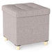 Colour: Beige Material: Linen Fabric, Foam, Rubber Wood, MDF Overall Dimensions: 45 x 45 x 45 cm (L x W x H) Inner Size: 41 x 41 x 34 cm (L x W x H) Storage Capacity: 55 L Load Capacity of Seat: 150 kg Load Capacity of Compartment: 20 kg Net Weight: 5 kg Box Qty: 1 (May vary by batch) Package Includes: 1 x Storage Ottoman 1 x Instruction Manual