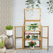 Ensuring that your plants reside in a hospitable climate, our greenhouse is outfitted with dual doors furnished with secure latches. This not only maintains desired temperatures but also safeguards your plants from unwanted pests. Additionally, the top of the greenhouse opens with a flexible hinge, simplifying the process of arranging your plant collection and further enhancing air circulation within the structure.