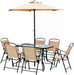 - Package Contents: 1x table, 6x chairs, 1x umbrella, assembly required