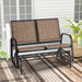The sleek black frame paired with the rich brown fabric creates an elegant and timeless look, ensuring that your new glider will match any outdoor decor. The dimensions, measuring 117 x 70 x 92 cm (L x W x H), make this piece both a comfortable and space-efficient addition to any area.