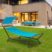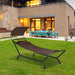 Equipped with a gracefully arched canopy, this hammock gives you the freedom to unwind in shaded luxury. Crafted from waterproof and durable polyester fabric, the canopy safeguards you from the sun's rays while you relish your outdoor respite. Additionally, a thoughtfully designed side storage pocket ensures that your personal items, such as mobile devices and reading materials, are always within reach.
