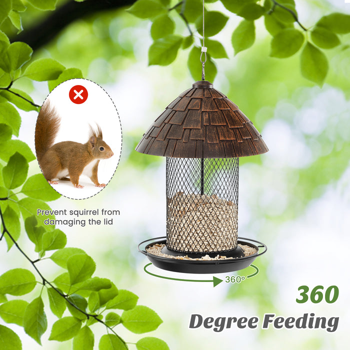 Stand out with our unique bird feeder that is designed with a full-view feeding trough. This exclusive design encourages birds to glean from any direction, offering unrestricted 360-degree access. The sturdy metal mesh acts as a strong barrier against squirrel damage and yet allows effortless pecking for our avian friends.