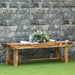 This bench isn't just about good looks—it's a symphony of thoughtful features designed to enhance your rest and relaxation. Crafted with a slatted seat design, it ensures that rainwater drains away effortlessly, preventing any weather-related wear and keeping your seating area pristine. The cleverly integrated bottom bar provides the perfect elevation for a light stretch or a restful spot to place your feet as you take in the ambiance.