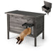 Colour: Dark Gray + Black/ Gray + Black Material: Fir Wood, Asphalt, PVC, Styfoam Overall Dimensions: 88 x 55 x 71 cm (L x W x H) Ground Clearance: 20 cm Size of the Door: 25 x 18 cm (L x W) Weight Capacity: 30 kg Net Weight: 14 kg Box Qty: 1(May vary by batch) Package Include: 1 x Outdoor Insulated Cat House 1 x Instruction Manual