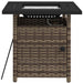 Constructed with a robust steel frame and cloaked in sleek, weather-resistant rattan, our fire pit table presents an aesthetic appeal along with unmatched durability. The powder-coated steel is the secret behind its solid core, while the classy plastic wicker embellishment adds a touch of sophistication to your outdoor decor.