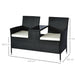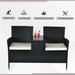 - Set Includes: 2 connected chairs, 1 built-in glass coffee table, and 2 plush cream seat cushions
