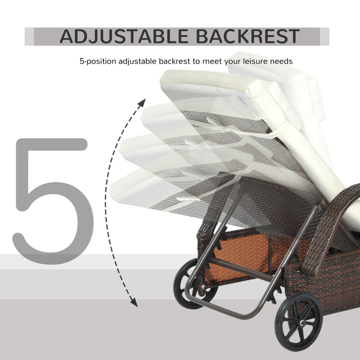 Designed with mobility in mind, the lounger features two built-in wheels for effortless movement, enabling you to chase the sunshine or find that perfect shade spot with ease. Compact dimensions of 200L x 73W x 30-103Hcm and a robust weight capacity of 160kg highlight both the spaciousness and durability of this premium outdoor furniture piece.