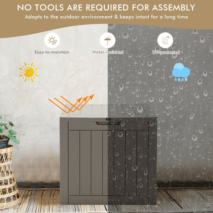 Constructed from premium PP material, this storage box is engineered to endure the elements. Weather-resistant by nature, it effortlessly stands up to rain, sleet, harsh winds, and the sun's relentless rays. Plus, with easy-grip built-in handles, relocating your storage box is an absolute breeze.