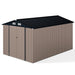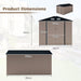 This large outdoor storage is designed for accommodating you outdoor clutters like pool equipment, garden tools, bicycles and repair kits. Crafted from selected galvanized steel, this shed is anti-rust, non-deformable, and crack-resistant, making it reliable in any weather condition. With a sloping roof design that prevents water accumulation and air vents for enhanced ventilation, this shed ensures a dry environment inside. Besides, it comes with 2 lockable opening doors and 2 keys, makes it a versatile and secure storage solution for your backyard, farm, or garden. Bullet Point:Large Storage Space: Measuring 362 cm x 236 cm x 197 cm (L x W x H), this large outdoor storage shed offers enough space for pool equipment, garden tools, bicycles and repair kits. It will help you to organize all your clutter and can be an ideal outdoor storage solution. Reliable Sloping Roof: This utility tool house is equipped with a sloping roof, which allows rainwater to flow down quickly and avoid water accumulation. Besides, the selected galvanized steel plate is anti-rust and crack-resistant, ensuring durability in all weather conditions. Sturdy and Stable Frame: This large storage shed is fortified with 3 crossbeams and a reinforced base, which helps to against strong winds. Additionally, it also comes with triangle anchors and anti-collision cover for extra stability. Wide Application: This versatile outdoor storage room can be used as a tool room, utility room, garbage house, or pet shelter. It provides ample storage space for pool equipment, tools, bicycles and lawnmowers, suitable for backyard, farm, or garden. Convenient Lockable Doors: Equipped with 2 opening doors, this garden storage house is easy for you to enter and exit. Meanwhile, the metal latch and locks serve to prevent the door from being easily opened and protect your items. Plus, the 2 keys are included for you to open the door.