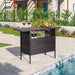 The suitable height of the table will make you feel very comfortable to sit around. Its large and classified storage space allows you to put wine, snacks, and drinks on the shelves for your convenience, so you can enjoy them anytime. Furthermore, the table is super sturdy with the reinforced metal structure and adjustable footpads. Meanwhile, the simple and elegant style also makes it a beautiful decoration for your balcony or garden, and will give you a feeling of relaxation and happiness when you relax with your family or friends. Imagine how you will spend your wonderful time with it. Bullet Point:Ample Storage Space: The wide tabletop provides ample space for you to easy fetch frequently used items. And double metal mesh shelves are also perfect to store multiple things like food, cups, plates and wine bottles. Moreover, the 2-rail stemware rack is added to store 4 wine glasses, which can protect them from breakage. Sturdy metal Structure: Made of heavy-duty metal pipes, the main frame of the bar table is not easy to deform or bend, ensuring high stability. Each metal pipe is well powder-coated for rust resistance. What’s more, the adjustable footpads on the bottom are functional to make the bar table stand more stably. Elegant and Weatherproof Rattan: The table frame is wrapped with well-woven mix brown PE rattan, add a piece of elegance to the surroundings. More importantly, the rattan surface is weatherproof and can withstand long-time outdoor use, enabling the bar table to accompany you anytime and anywhere. Wide Range of Application: Elegant PE rattan looks stylish and simple, and will not go out of style even after many years. And the bar table is in a suitable height, matching well to most kinds of outdoor bar chairs. Therefore, it’s ideal for multiple occasions, like backyard, poolside, deck, balcony and garden. Simple Installation: The bar table is equipped with an easy-to-follow instruction, so the assembly won’t cost too much of your time or effort. Note: Please do not tighten all the screws until all the holes are aligned.