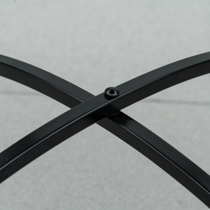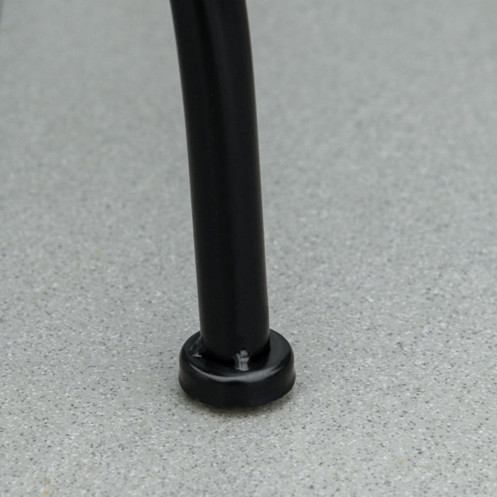 - Metal frame: Powder coated for extra strength, this round table is a tough piece, resistant to weathering and corrosion. Curved legs and bottom crossbar adds stability.