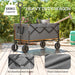 - All-terrain wheels: This folding wagon features two universal wheels with brakes for effortless steering and a 7-inch design for smooth movement across all terrains, from garden paths to sandy beaches.