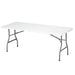 - Solid construction: Our small folding table has a metal frame with a powder-coated finish and a top made of recycled HDPE. HDPE is a quality material that doesn't splinter, crack, chip, or peel. It's made from around 30,000 recycled milk jugs per hour.