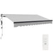 Enjoy the outdoors in style with the Outsunny electric awning! Effortlessly extend this garden awning canopy with a remote control or manually twist the hand crank. Crafted from rust-resistant aluminium and 280g/m² polyester that blocks harmful UV rays, this retractable awning lets you lounge comfortably, adjusting the tilt from 45° to 85° to cast your shade over your patio or window.