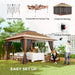Easy outdoor gatherings with this Outsunny pop-up gazebo. Fitted with a UPF50+ fabric canopy, you and guests are shielded against 98% of UV rays, fitted with a removable mesh lining to help keep bugs and insects away. Set the metal frame between 260cm, 270cm and 280cm - pick the height you require. Comes with guy ropes, ground stakes and sand bags for weight - with a wheeled bag for storage.