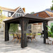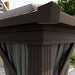 - Double curtains: Outer fabric for privacy when closed, inner netting to protect from bugs. Hard roof gazebo can create both an open or closed atmosphere. Curtains can be tied to the sides.
