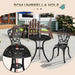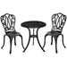 Add a touch of elegance to your outdoor areas with this Outsunny set. Includes two chairs and a matching table. Centre umbrella hole to hold a parasol in place. Garden table and chairs are made from aluminium for strength, with the decorative patterns for a decorative finish.