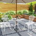 - Aluminium frames: Strong powder coated finish - anti-rust and water-resistant. Adjustable foot pads keep the outdoor table and chairs stable.