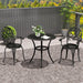 - Three-piece bistro set: two chairs with armrests and a matching round table